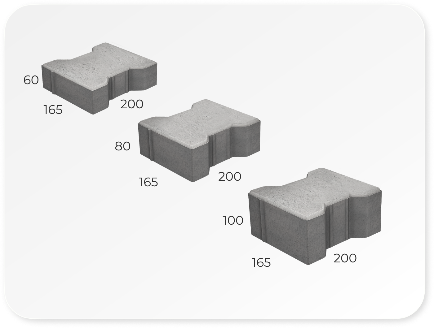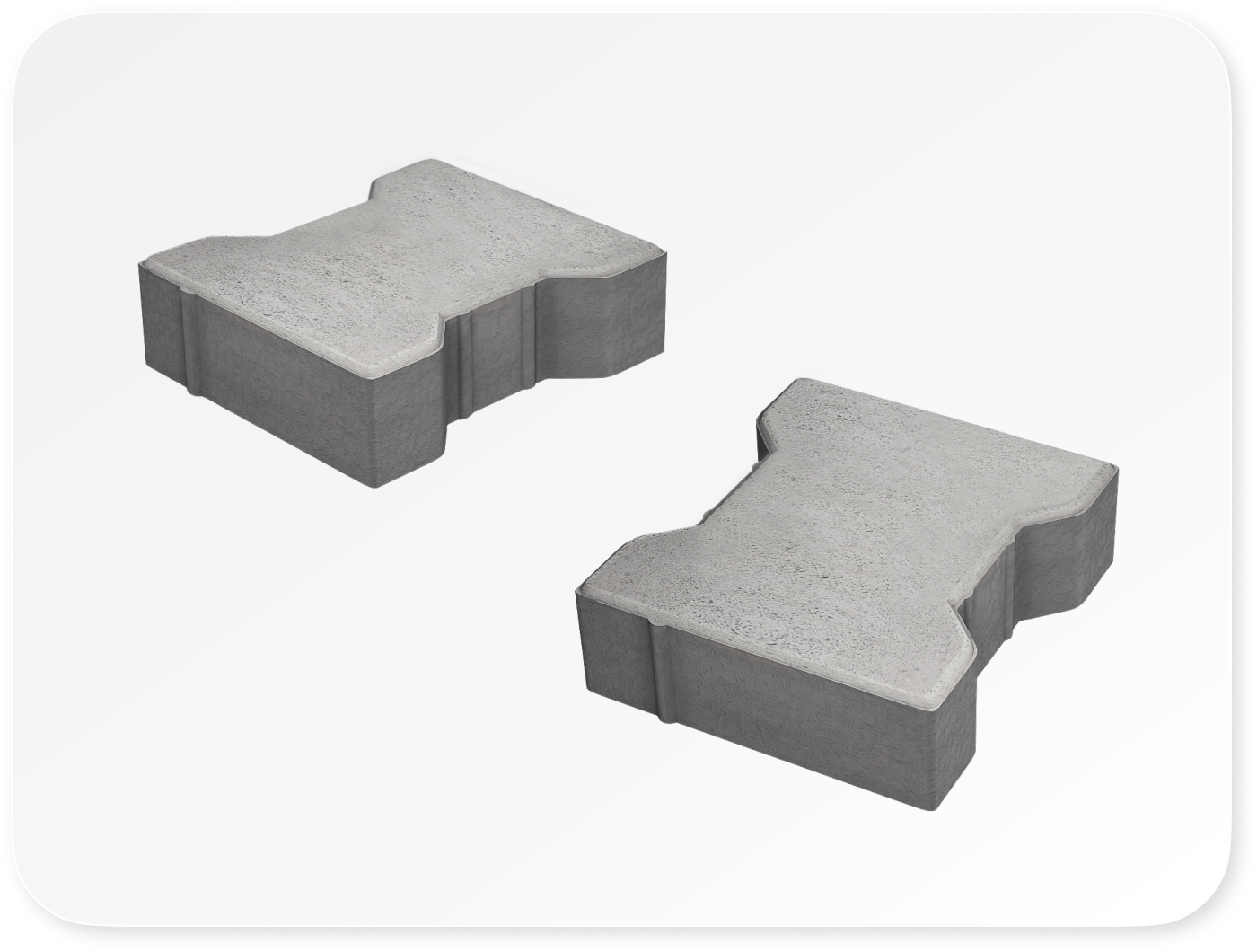 Специфічна форма бруківки «Гантель» забезпечує ідеальне зчеплення бетонних елементів і, в результаті, стійку та міцну поверхню. Має низький коефіцієнт тертя та водопоглинання та шорстку поверхню.