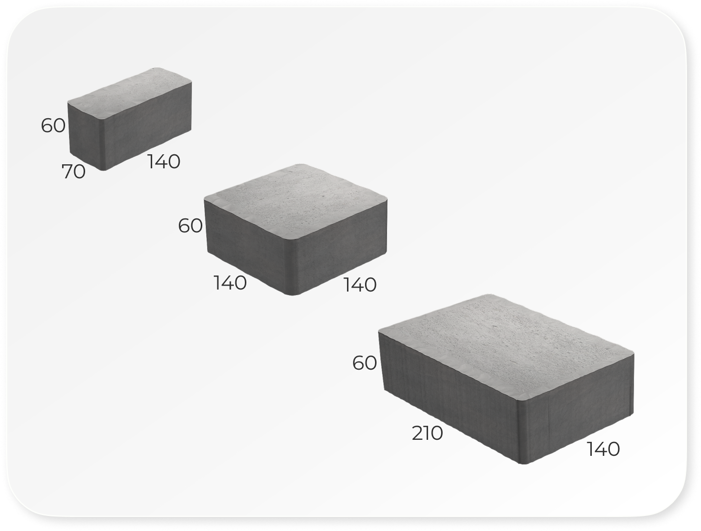 Приваблює акуратністю, цікавою геометричною формою та відсутністю швів. Завдяки своїй формі, розміру і простій кольоровій палітрі, бруківка чудово доповнить дизайн фасаду будинку.